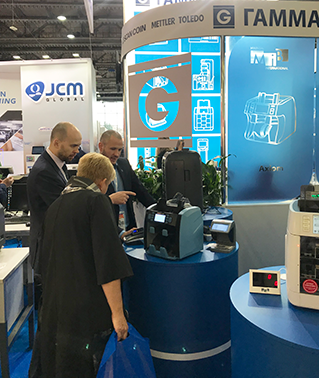 В рамках выставки, которая работает параллельно с конференцией, ГК «Гамма-Центр» на своем стенде в этом году представила ряд новинок. Среди них инновационный высокоскоростной двухкарманный сортировщик для больших объемов наличности AXIOM. Наш новый сортировщик осуществляет сравнение, сканирование и выгрузку серийных номеров банкнот с одновременной проверкой машиночитаемых признаков, а также сортировку по ветхости. Скорость обработки банкнот не имеет на сегодняшний день аналогов на рынке, количество валют, с которыми работает AXIOM, как одновременно, так и с использованием функции их автопереключения, равняется 40.